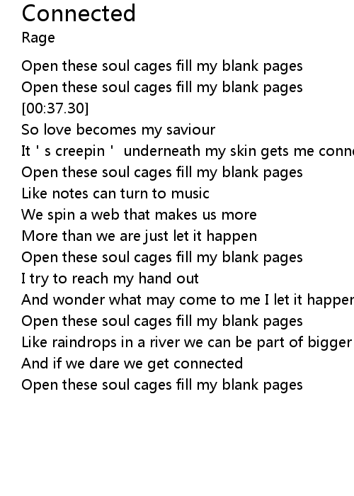 | [00:20.39] | Open these soul cages fill my blank pages |
