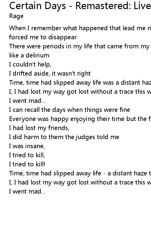 Time, time had slipped away life was a distant haze this was on certain days |
