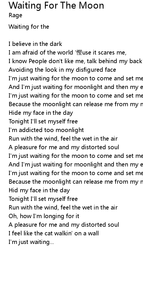 | And I' m just waiting for moonlight and then my eyes you can see | |