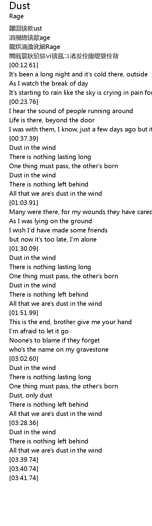 | [01:32.20] | Dust in the wind |