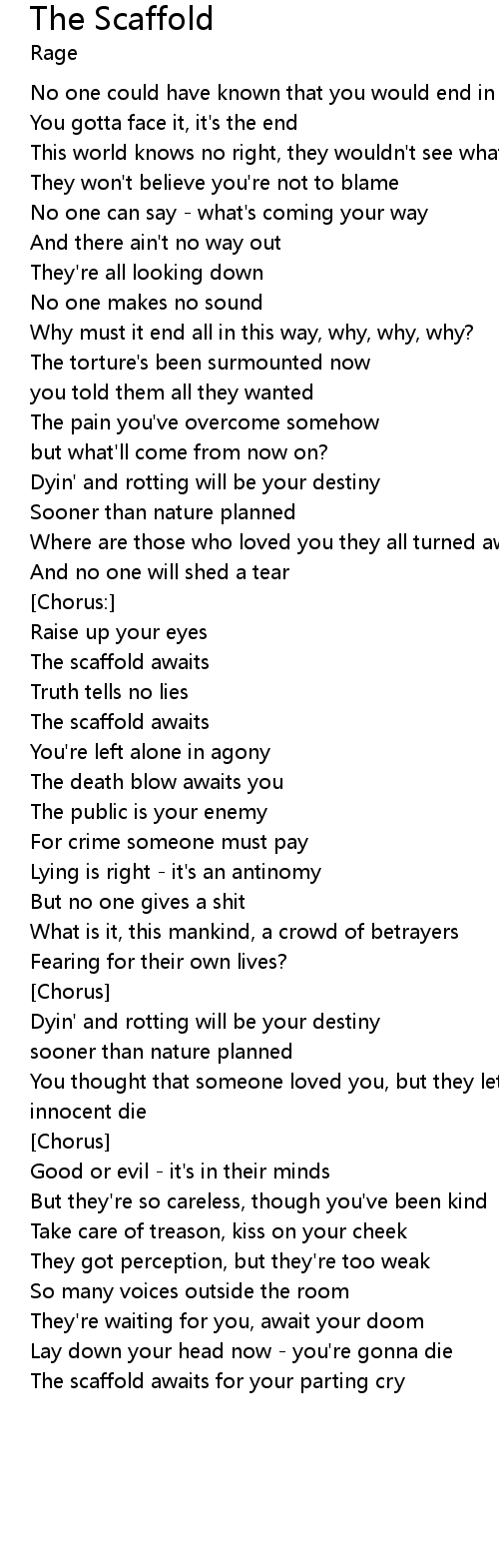 The scaffold awaits for your parting cry |