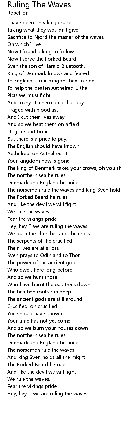 | The norsemen rule the waves and king Sven holds all the might | |