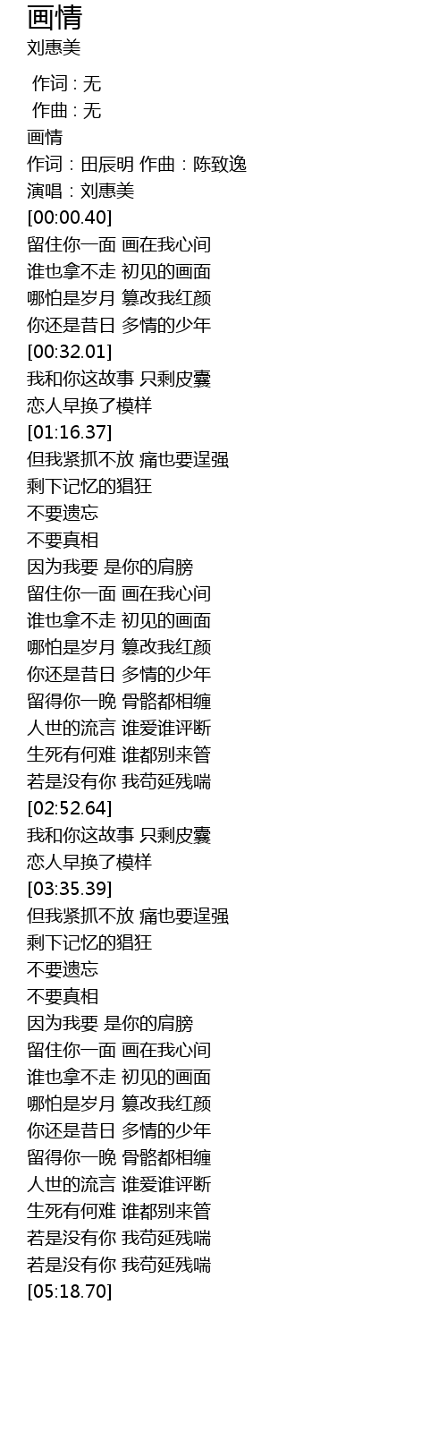 | [04:16.57] | shui ye na bu zou chu jian de hua mian |