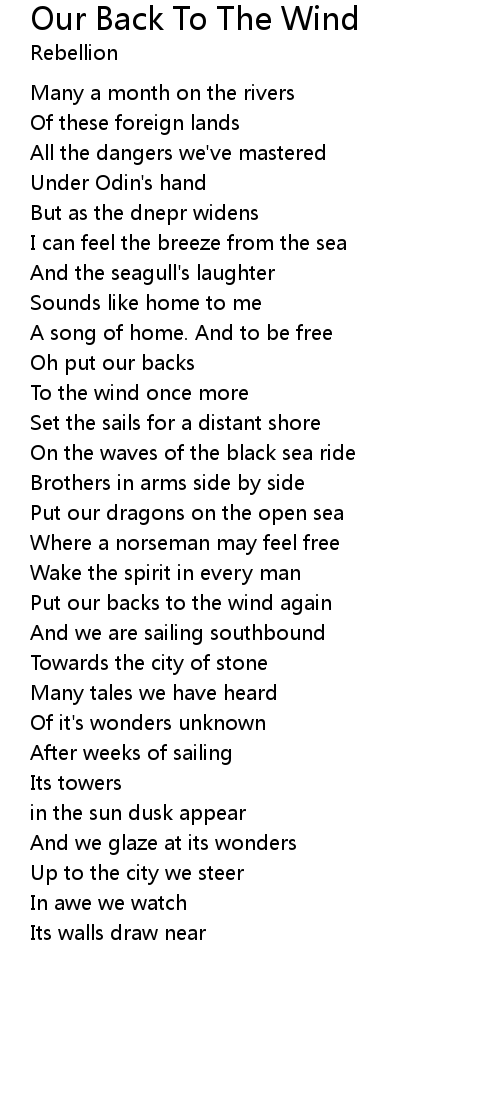 Put our backs to the wind again |