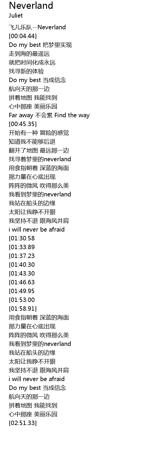 | [00:00.00] | fēi ér yuè duì Neverland |