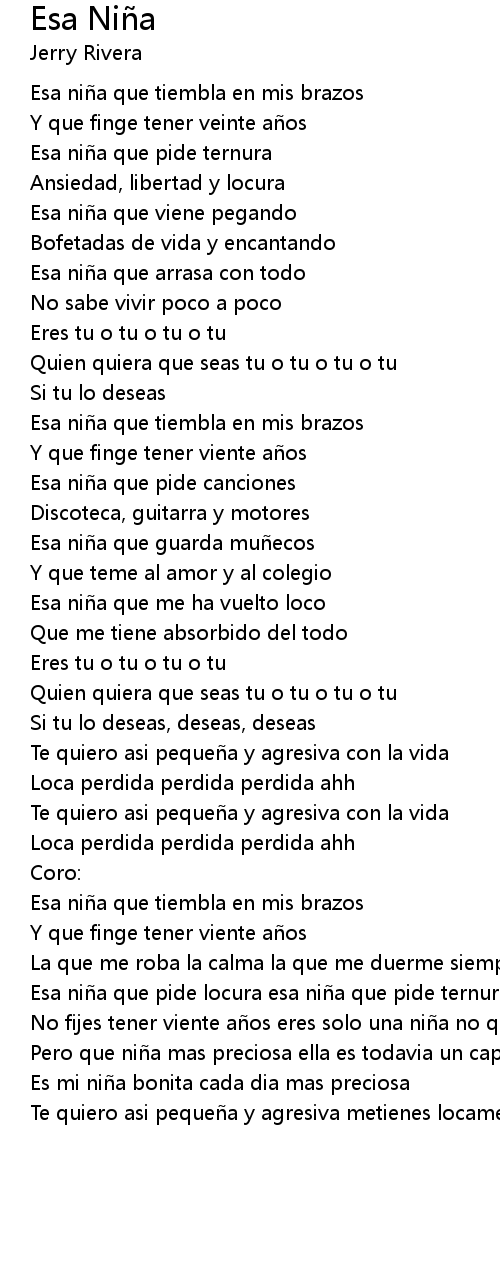 | Esa ni a que pide locura esa ni a que pide ternura | |
