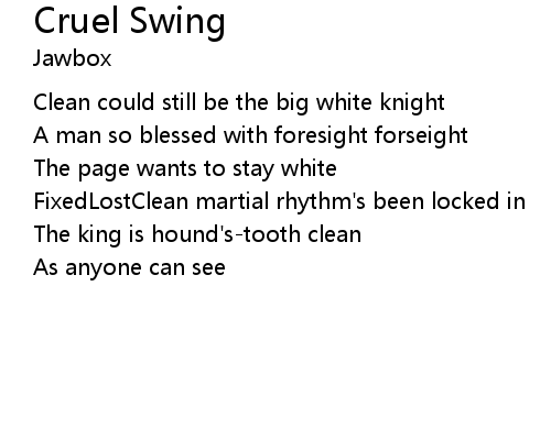 | Song | Cruel Swing |