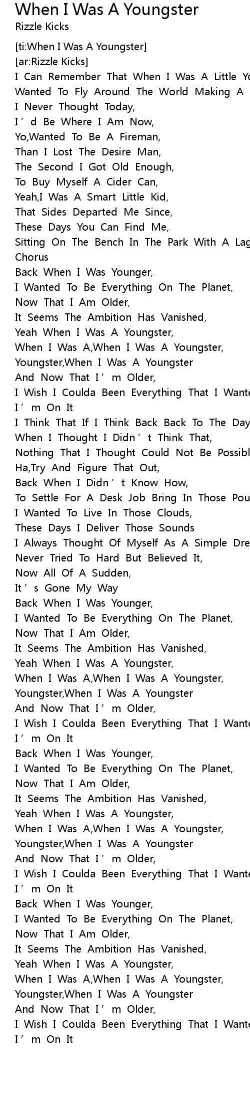 | [01:40.226] | Youngster, When I Was A Youngster |
