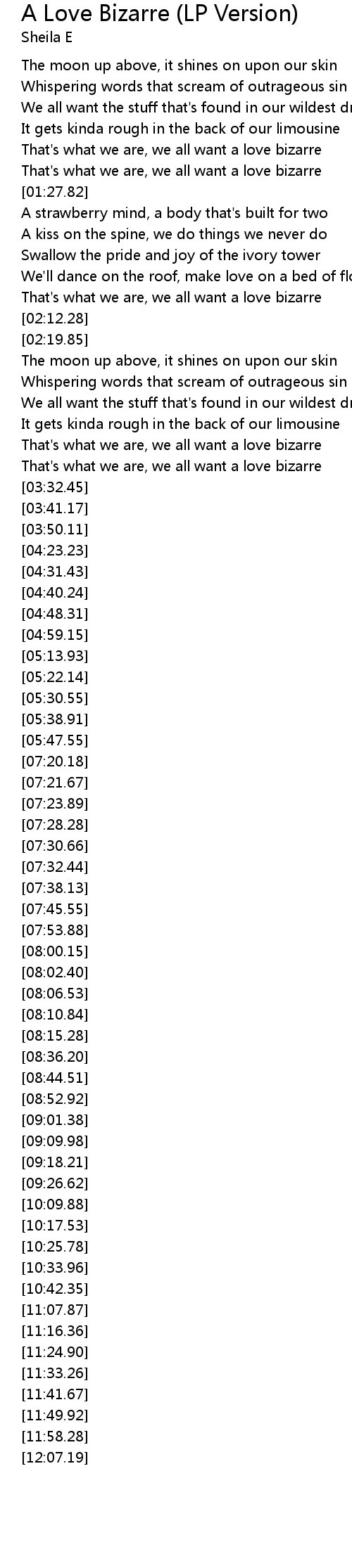 That's what we are, we all want a love bizarre |