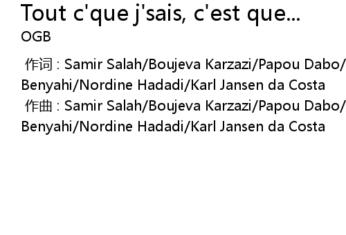 | [00:00.000] | 作词 : Samir Salah/Boujeva Karzazi/Papou Dabo/Karim Benyahi/Nordine Hadadi/Karl Jansen da Costa |