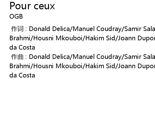 | [00:00.000] | 作词 : Donald Delica/Manuel Coudray/Samir Salah/Abdelkrim Brahmi/Housni Mkouboi/Hakim Sid/Joann Duport/Jean-Jacques Anicette/Karl Jansen da Costa |