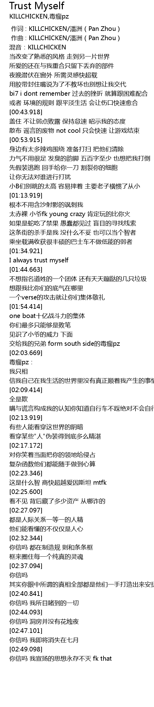 | [00:01.000] | zuo qu : KILLCHICKEN pan zhou Pan Zhou |