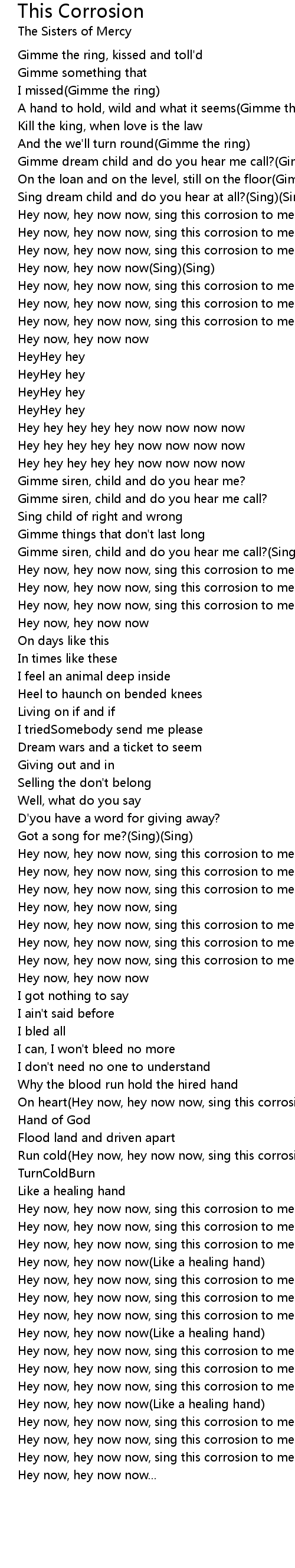 Hey now, hey now now, sing this corrosion to me |