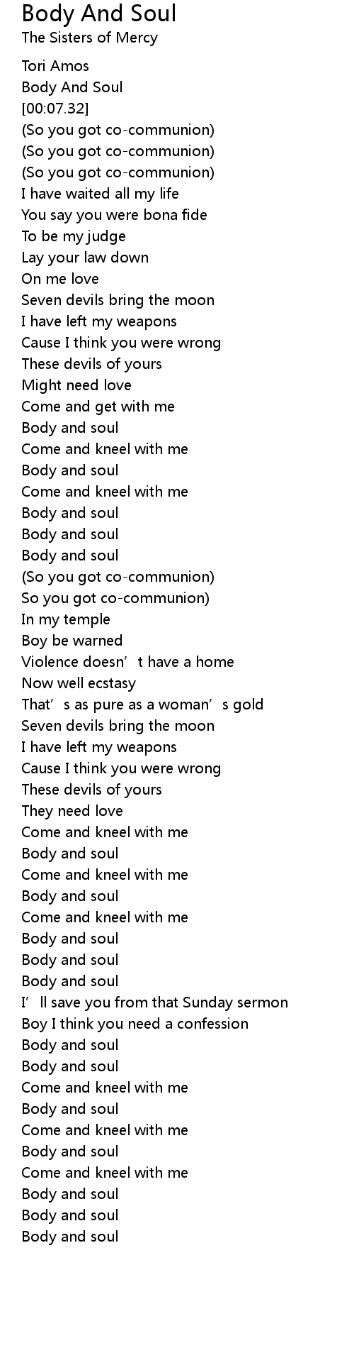 | [03:28.41] | Body and soul |