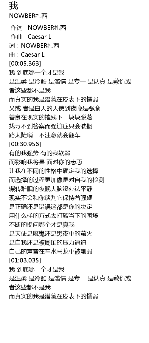 | [00:01.594] | 词:NOWBER扎西 |