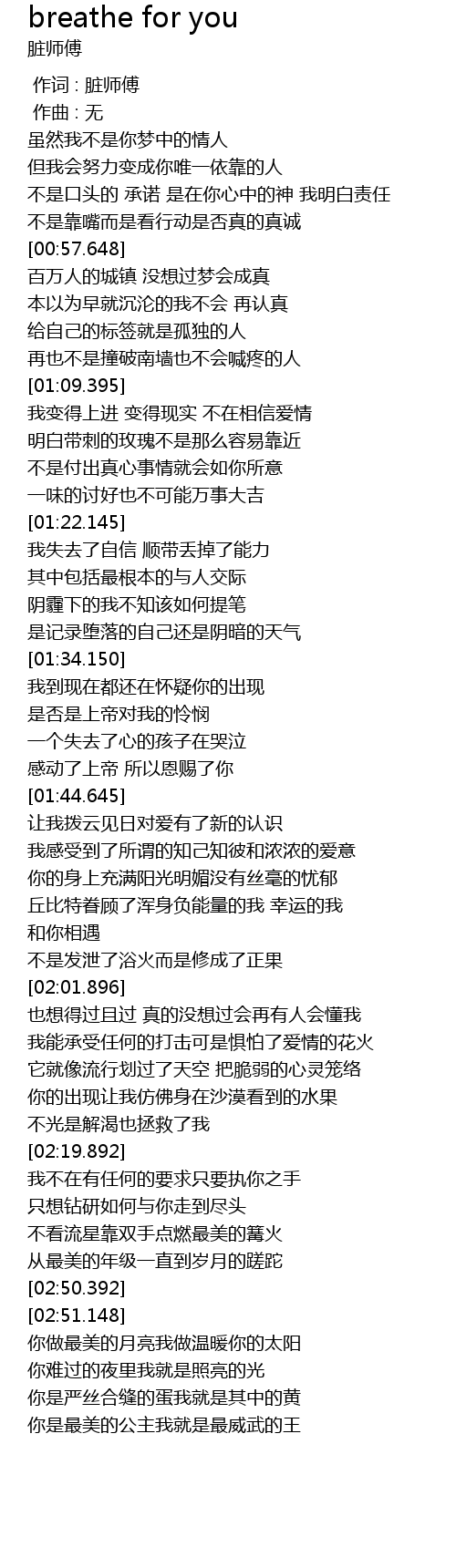 | [02:57.150] | 你是严丝合缝的蛋我就是其中的黄 |