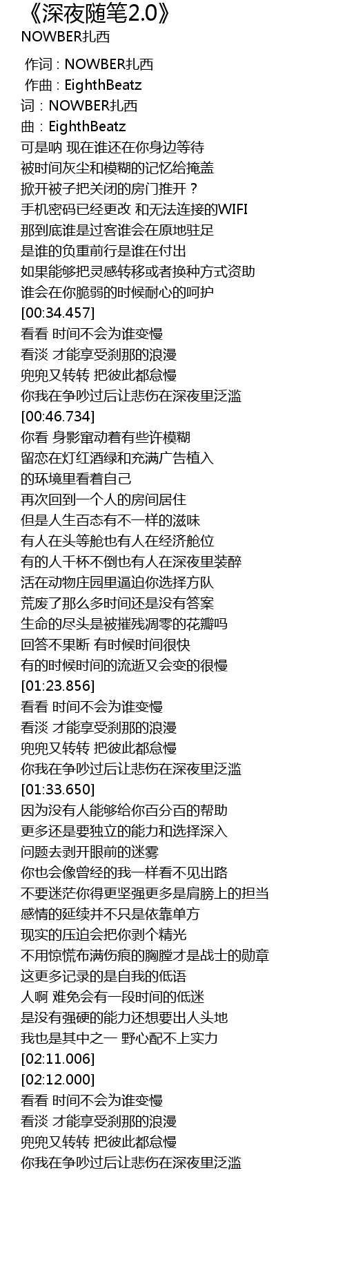 | [00:00.000] | 作词 : NOWBER扎西 |