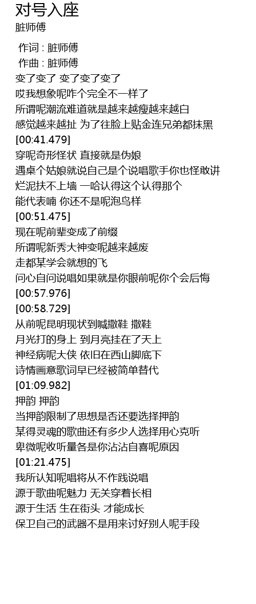| [01:11.479] | 押韵 押韵 |