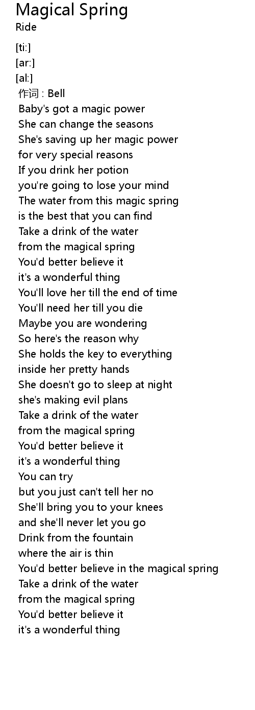 | [03:09.44] | You'd better believe in the magical spring |