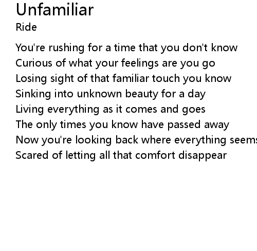 | Song | Unfamiliar |