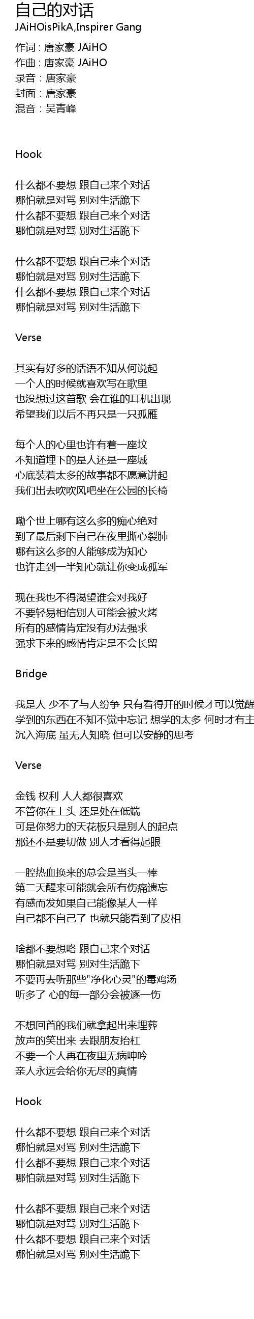 | 作词 : 唐家豪 JAiHO | |
