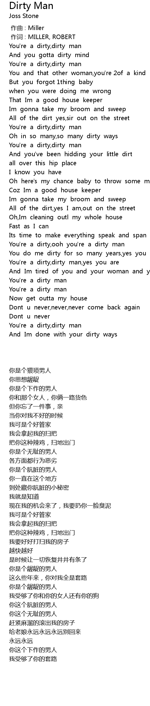 | [02:03.708] | You' re a dirty, ooh you' re a dirty man |