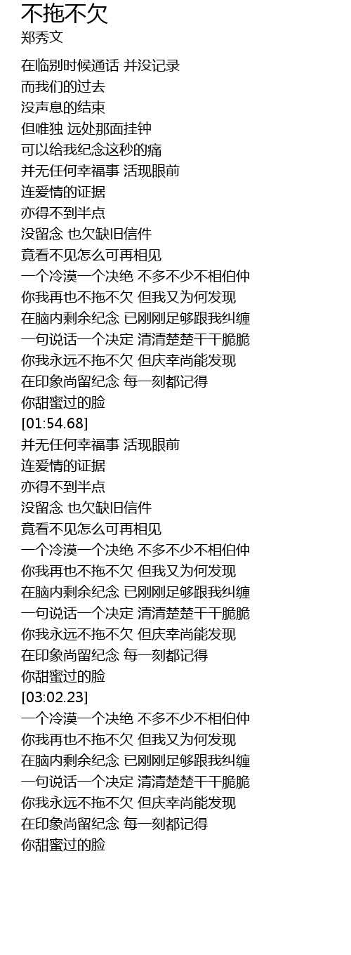| [01:39.48] | 你我永远不拖不欠 但庆幸尚能发现 |