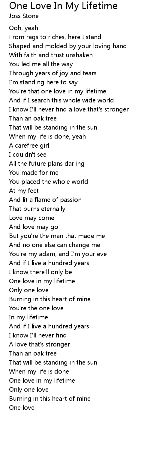 One love in my lifetime |