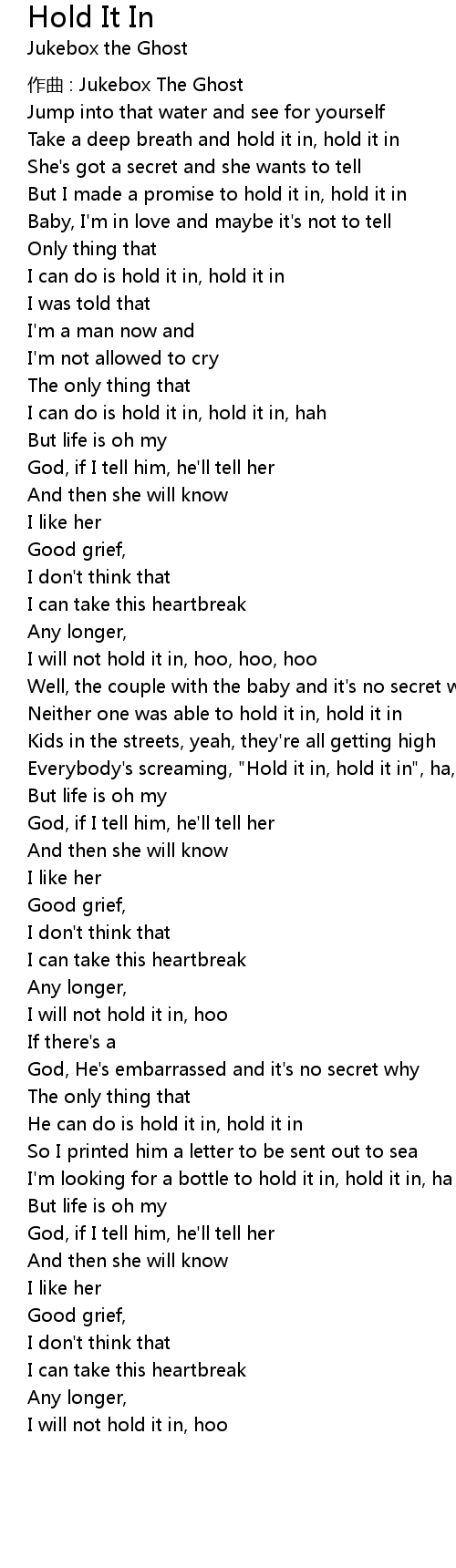 | Everybody' s screaming, " Hold it in, hold it in", ha, hey | |