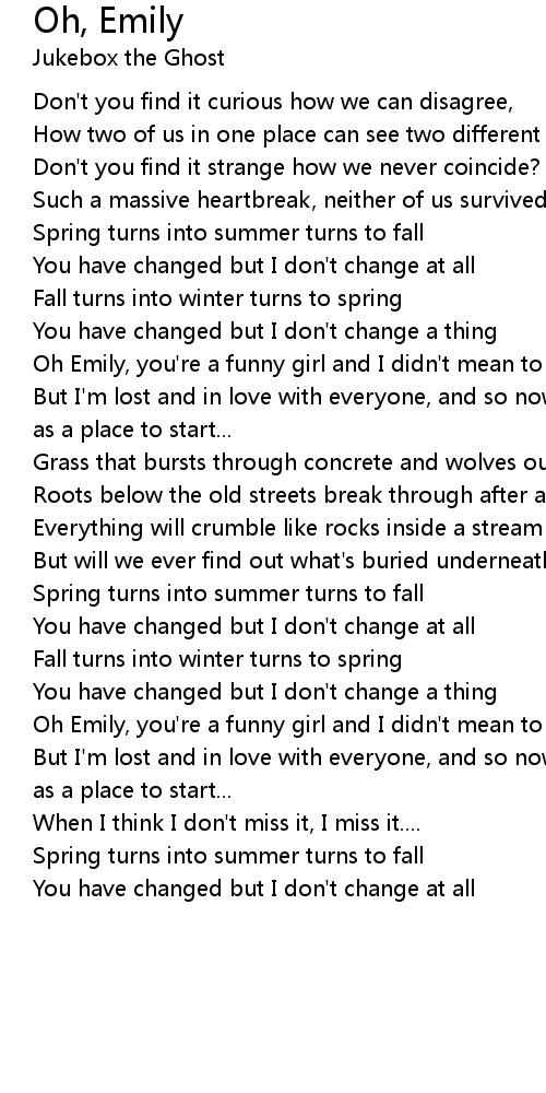 Oh Emily, you're a funny girl and I didn't mean to break your heart |