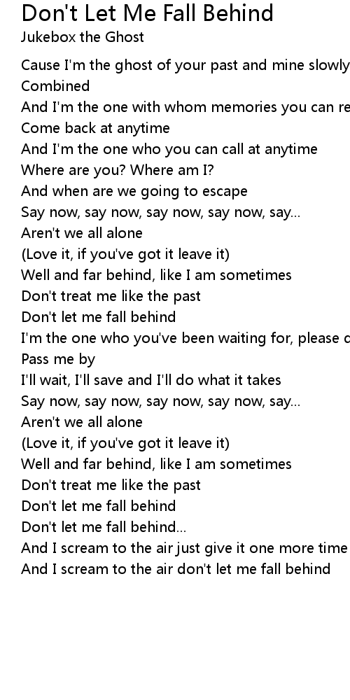 Don't let me fall behind |