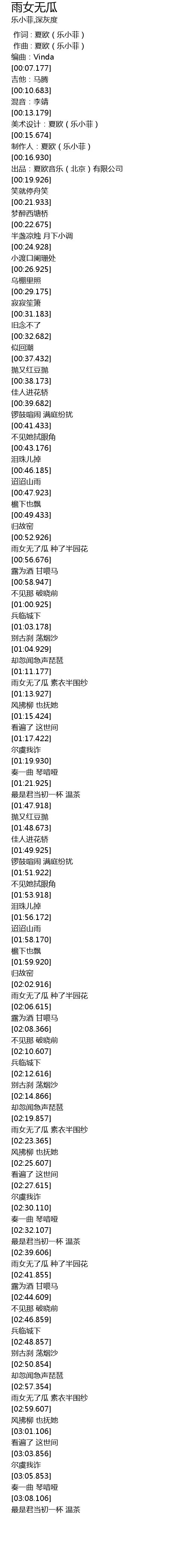 | [00:54.923] | 雨女无了瓜 种了半园花 |