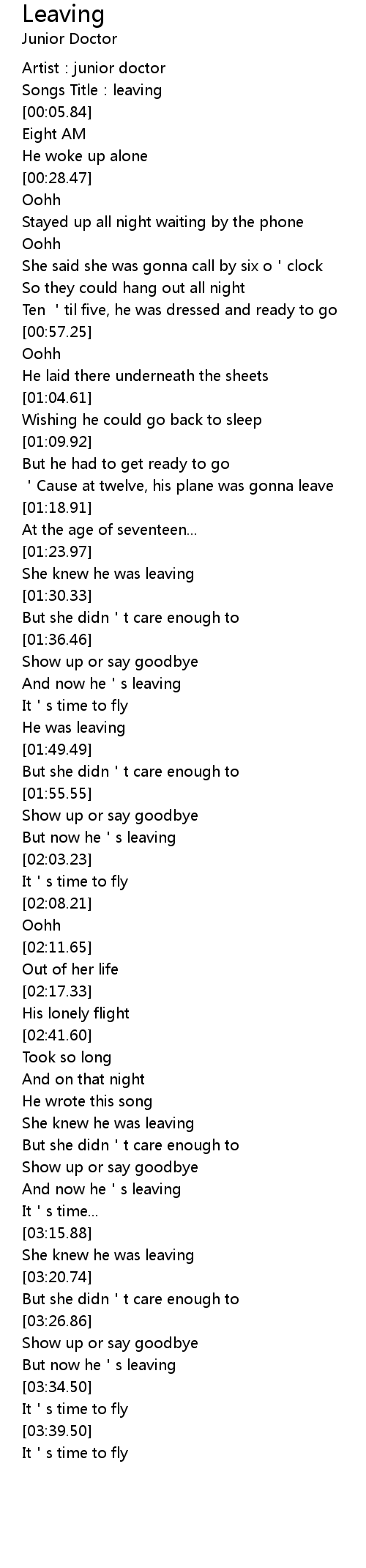 | [01:14.85] | Cause at twelve, his plane was gonna leave |