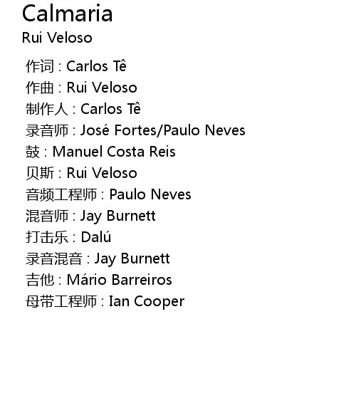 | [00:00.000] | 贝斯 : Rui Veloso |