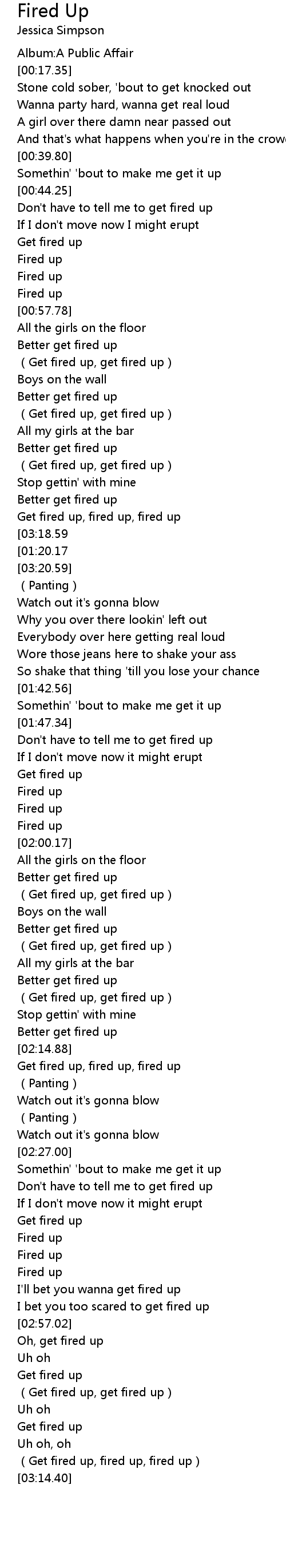 | [03:11.53] | (Get fired up, fired up, fired up) |