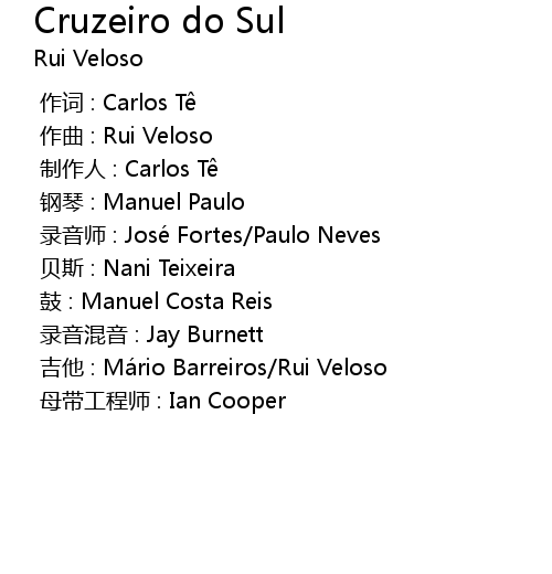 | [00:00.000] | 吉他 : Mário Barreiros/Rui Veloso |