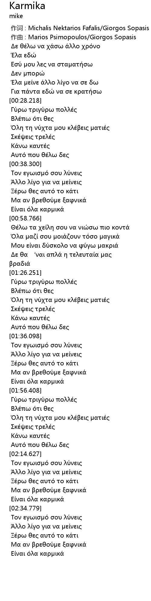 作词 : Michalis Nektarios Fafalis/Giorgos Sopasis |
