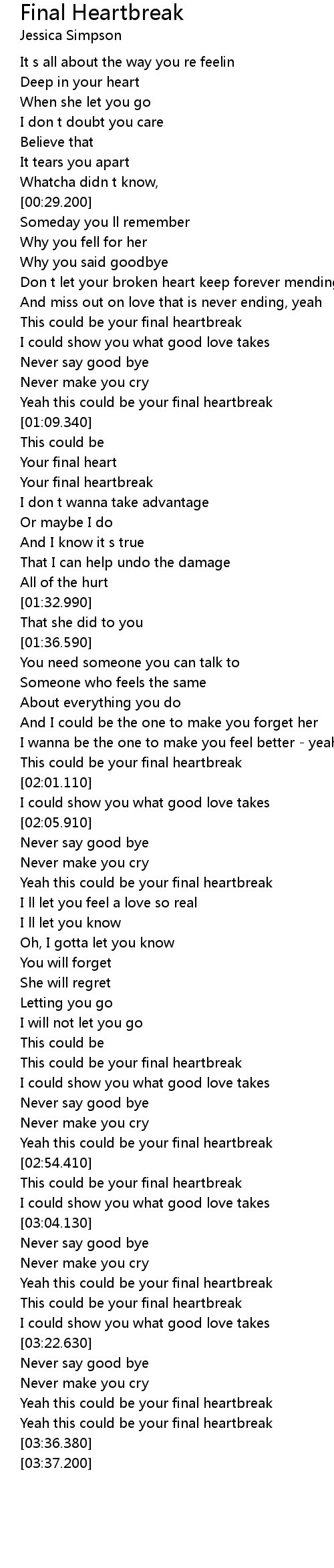 | [02:50.340] | Yeah this could be your final heartbreak |