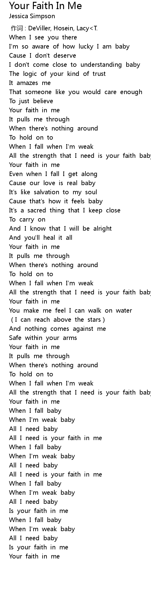 | [02:29.44] | All the strength that I need is your faith baby |