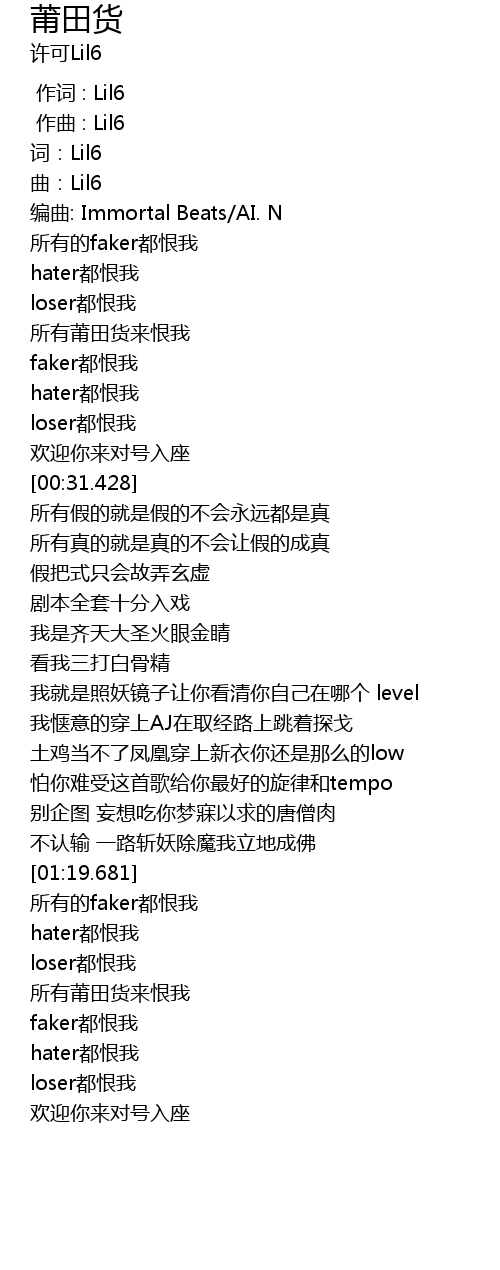 | [01:19.178] | 不认输 一路斩妖除魔我立地成佛 |