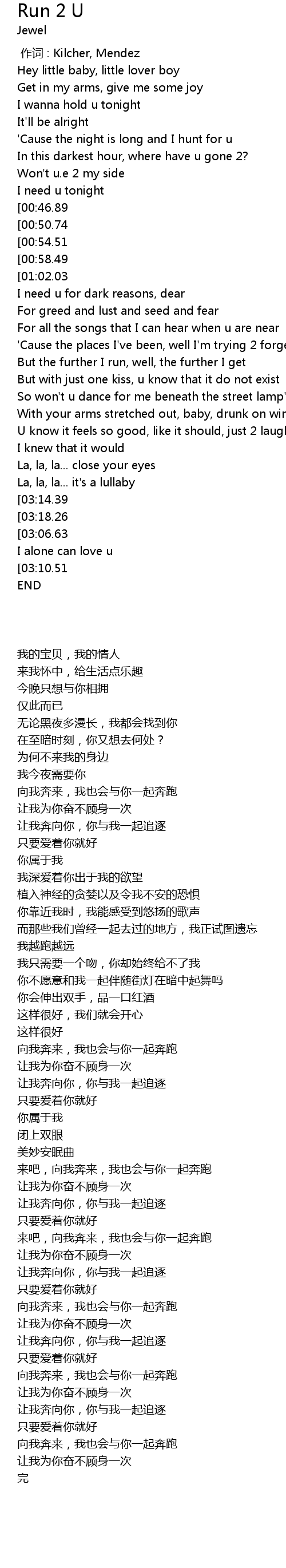 | [02:00.61][00:54.51] | Run 2 u, you' ll run 2 me |