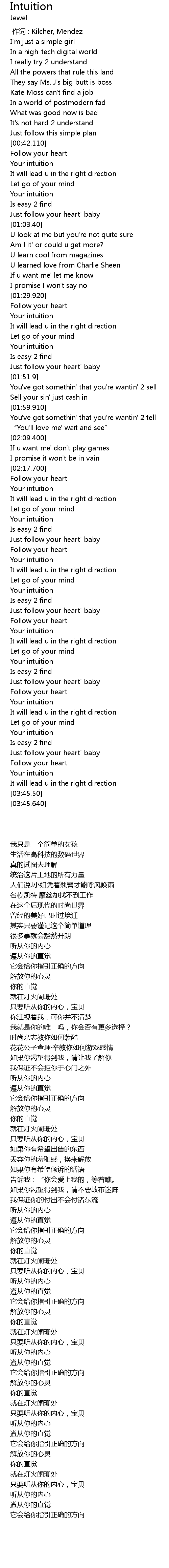 | [00:00.00] | 作词 : Kilcher, Mendez |