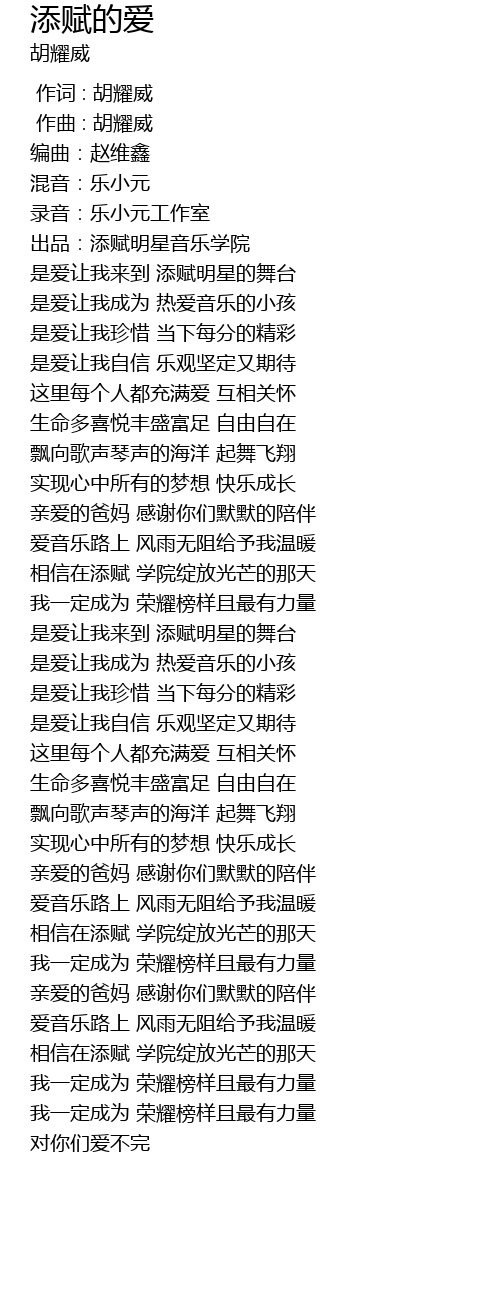 | [00:05.15] | 出品:添赋明星音乐学院 |