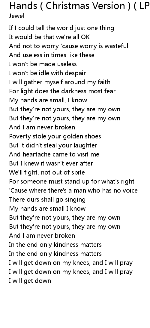 Hands ( Christmas Version ) ( LP Version ) Lyrics