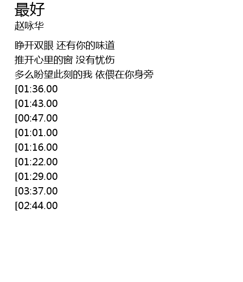 | [03:13.00][01:43.00][00:41.00] | 在你怀抱 感觉最好 |