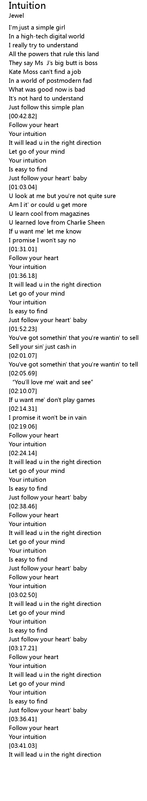 | [03:00.67] | Your intuition |