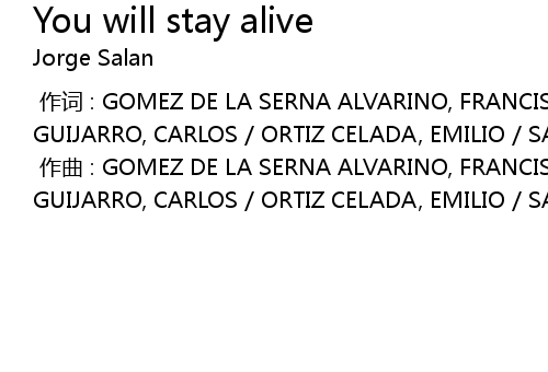 | [00:00.000] | 作曲 : GOMEZ DE LA SERNA ALVARINO, FRANCISCO JAVIER / PRIETO GUIJARRO, CARLOS / ORTIZ CELADA, EMILIO / SALAN GONZALEZ, JORGE |