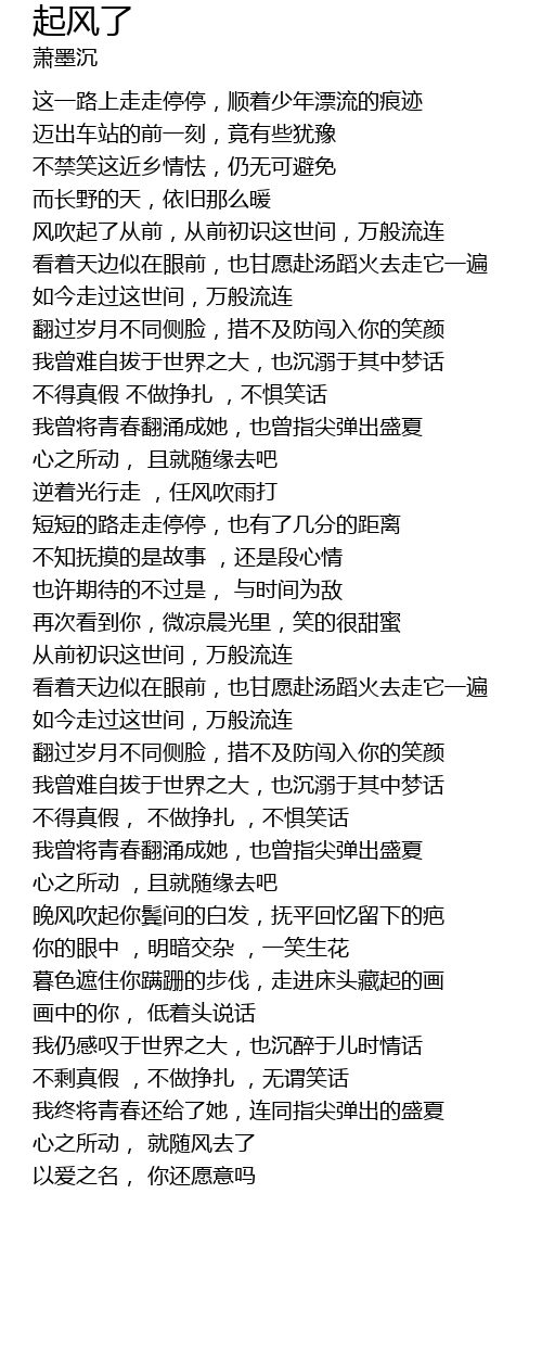 | [00:49.657] | 风吹起了从前,从前初识这世间,万般流连 |