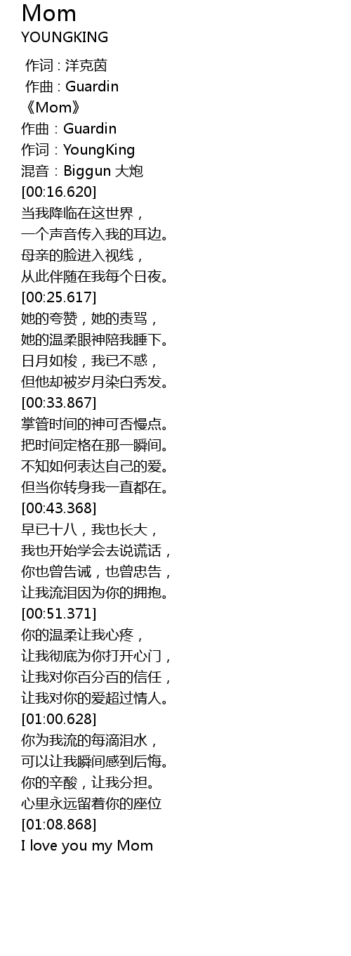 | [00:05.101] | 《Mom》 |