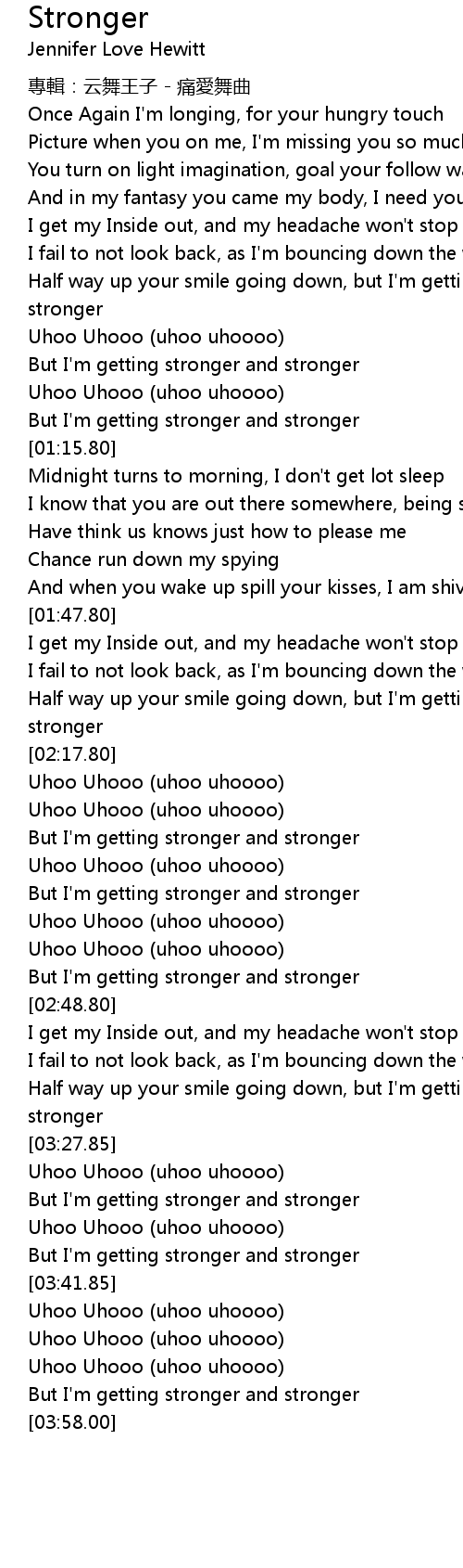 | [02:29.00] | But I'm getting stronger and stronger |
